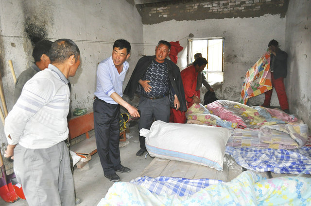 圖為廣廈公司黨支部書(shū)記游紅新在7連給勞務(wù)工人員安排住宿