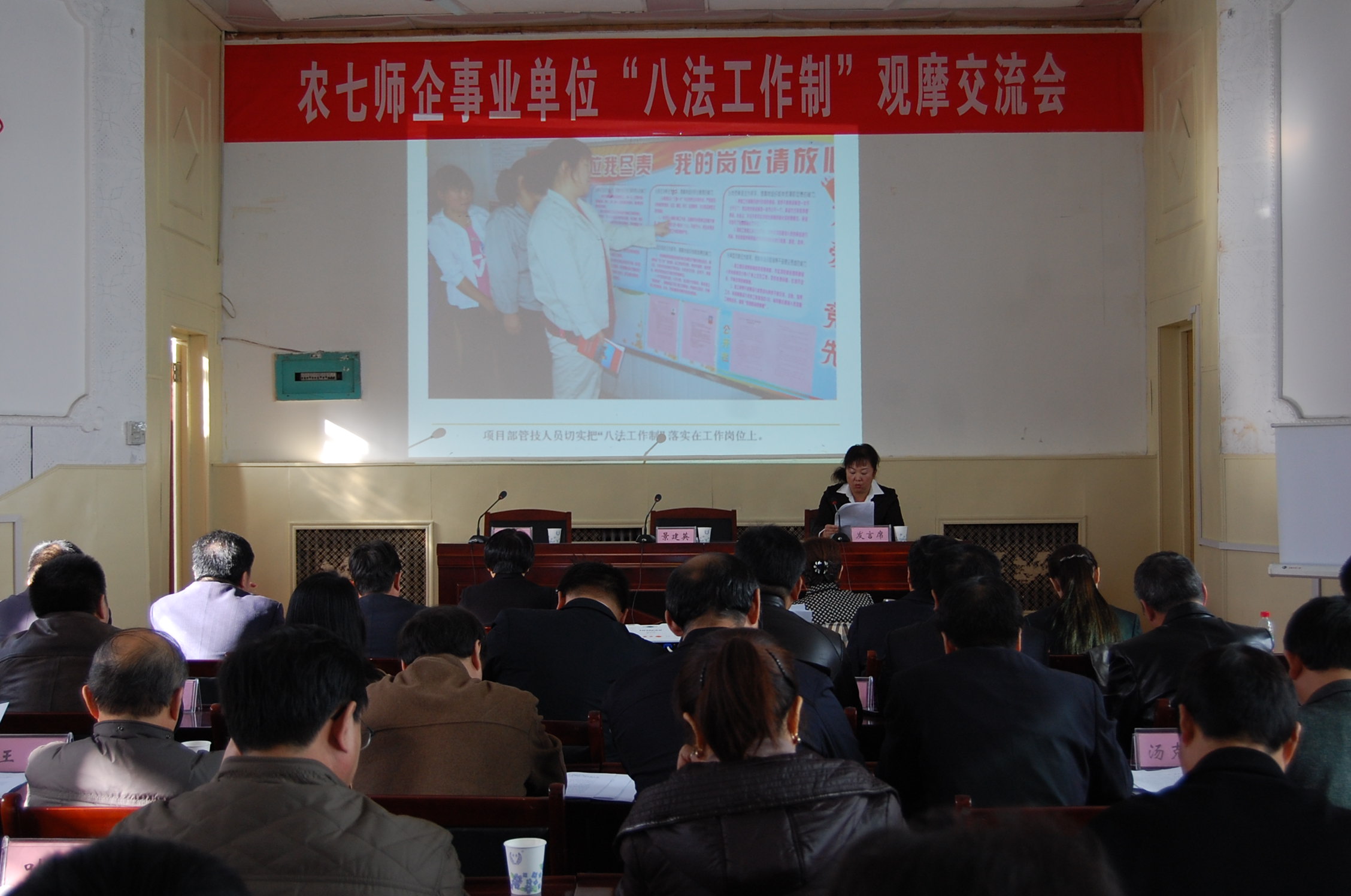 為進(jìn)一步抓好“八法工作制”在師直企事業(yè)單位的有效落實(shí),11月5日,七師組織召開(kāi)了“八法工作制”現場(chǎng)觀(guān)摩交流會(huì ),七師副政委景建英、組織部領(lǐng)導以及各師直企事業(yè)單位領(lǐng)導和政工部門(mén)負責人參加了此次會(huì )議。