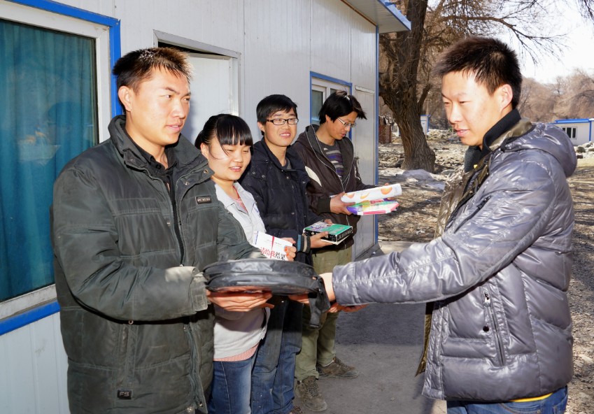 圖為公司團委向二十八項目部團支部贈送體育器材