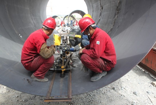 為了搶在洪水來(lái)臨之前完成輸水管道安裝和相關(guān)的土建項目,不影響附近團場(chǎng)農田用水和八級站工程竣工的發(fā)電用水,在集團公司黨委的大力幫助支持下,工區新增添了兩臺自動(dòng)埋弧焊機和與之相配套的滾輪架,四臺二氧化碳氣體保護焊設備,萬(wàn)能式卷板機一臺,投入數十萬(wàn)元,集中40多名施工人員,配備12臺電焊機,一臺行車(chē),和一輛16噸吊車(chē),現場(chǎng)工人卷鋼板的、組對的,進(jìn)行焊接和防腐、安裝的,大家各守一方,齊心協(xié)力按項目節點(diǎn)控制和競賽方案進(jìn)行著(zhù)緊張有序的勞動(dòng)競賽,力爭把3000元的獎金拿到手。